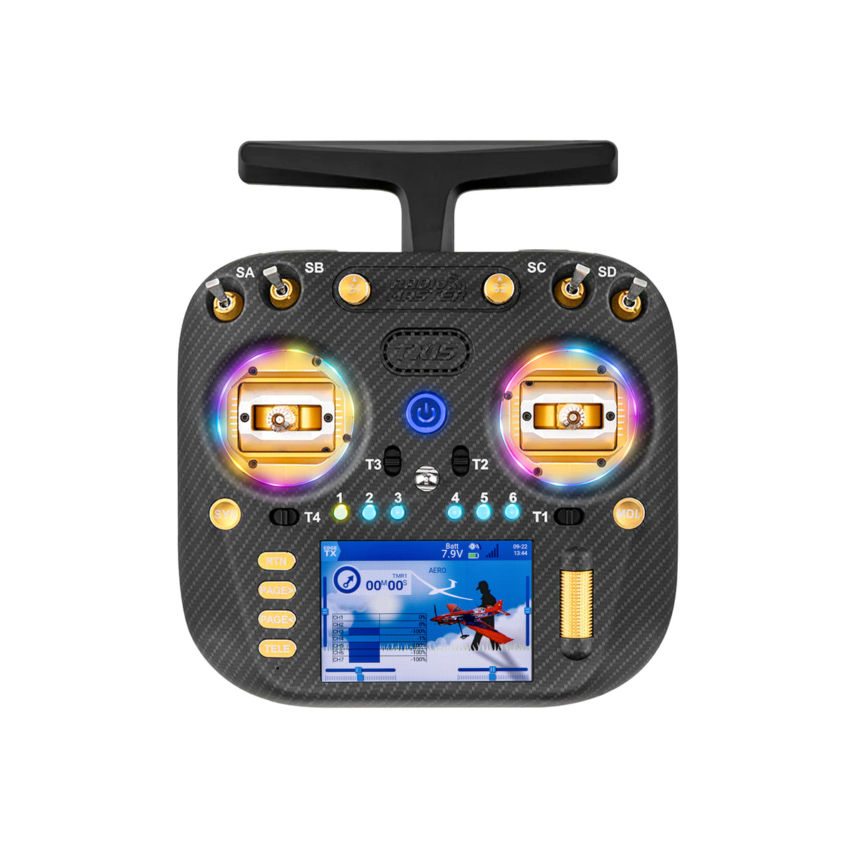 The TX15 Max Radio Controller stands out with powerful performance and user-centric design: It supports 2.4GHz/900MHz ExpressLRS (ELRS) protocols, paired with a Semtech LR1121 transceiver for stable long-range signals and low latency. Powered by the STM32 H7 chip and EdgeTX firmware, it delivers ultra-smooth control, quick model switching, and fast script execution. Equipped with a 3.5-inch IPS touchscreen (480x320 resolution, 600 nits brightness), it’s clear even under bright sunlight for easy outdoor operation. Premium AG02 CNC aluminum gimbals (adjustable travel, RGB LED lighting) offer precise control, while smart battery management (compatible with 2S LiPo/18650/21700 batteries, not included) and cooling systems (fans + aluminum heat sink) extend runtime. Features like a foldable antenna, built-in gyroscope trigger switch, and JR-compatible module bay enhance versatility, with easy storage and seamless functionality.